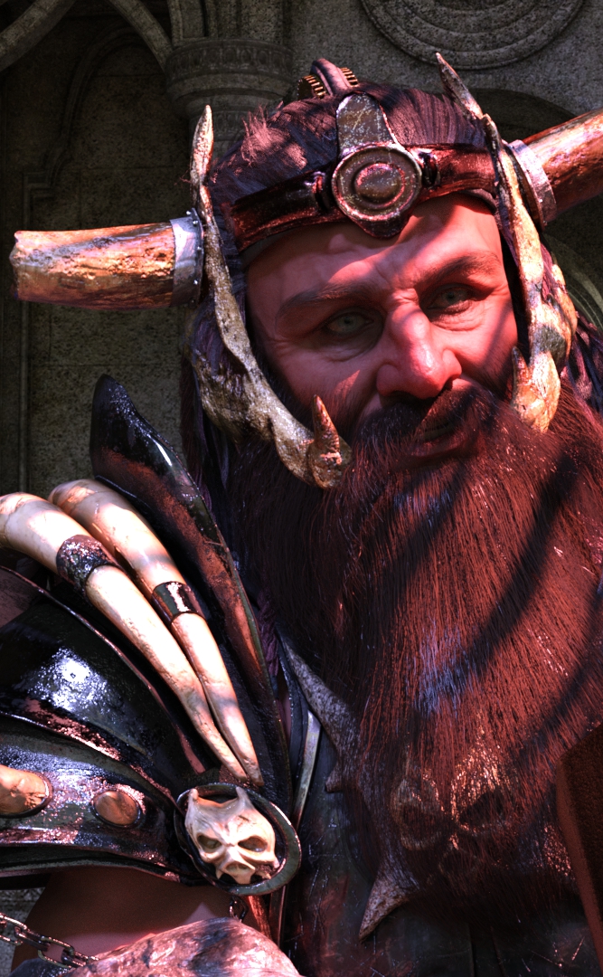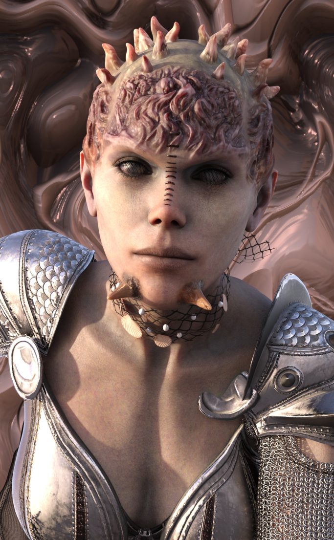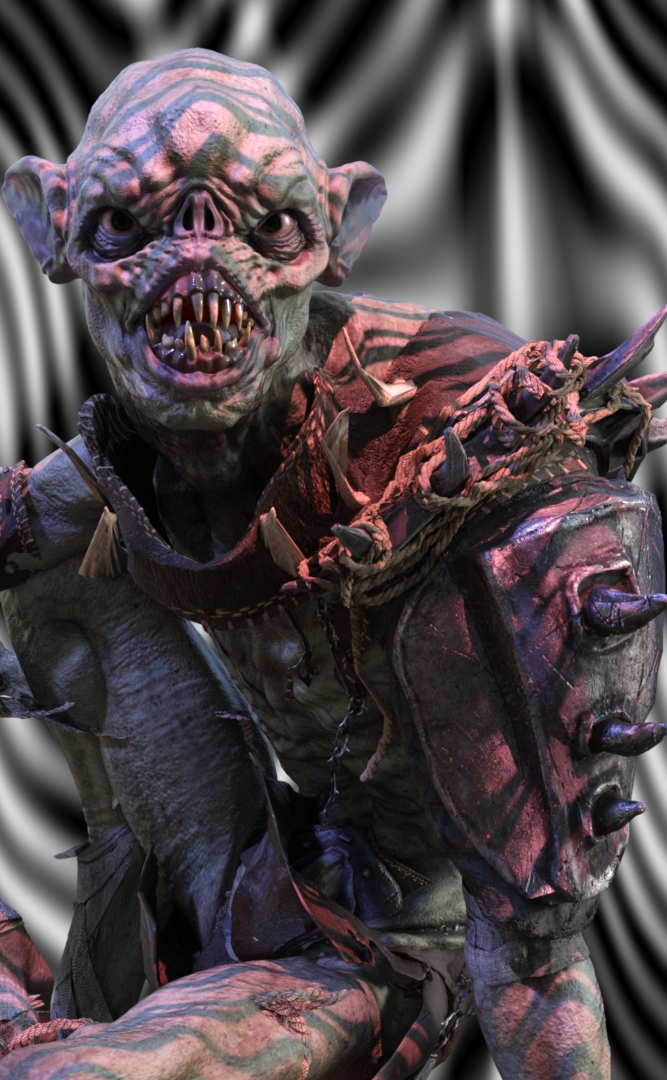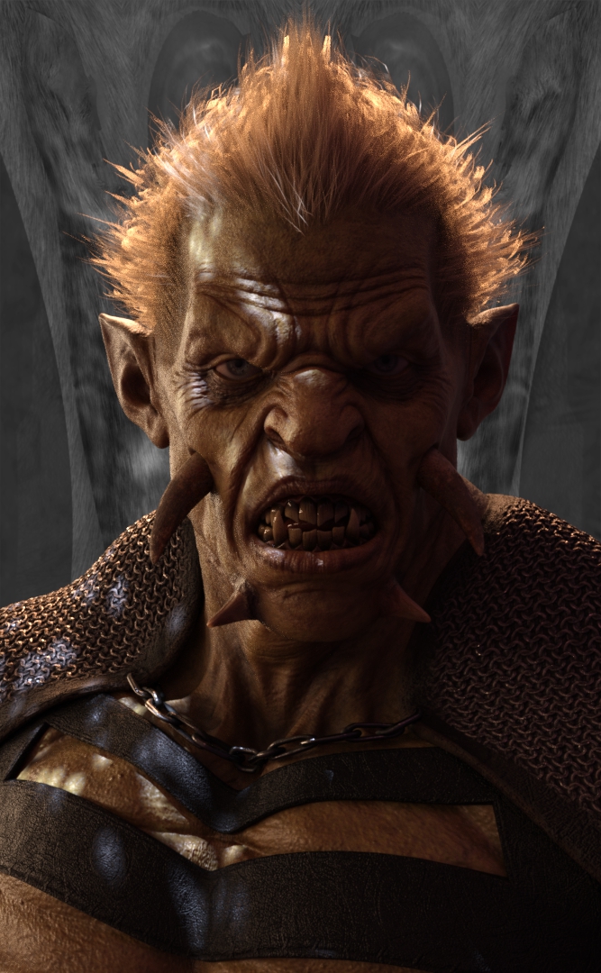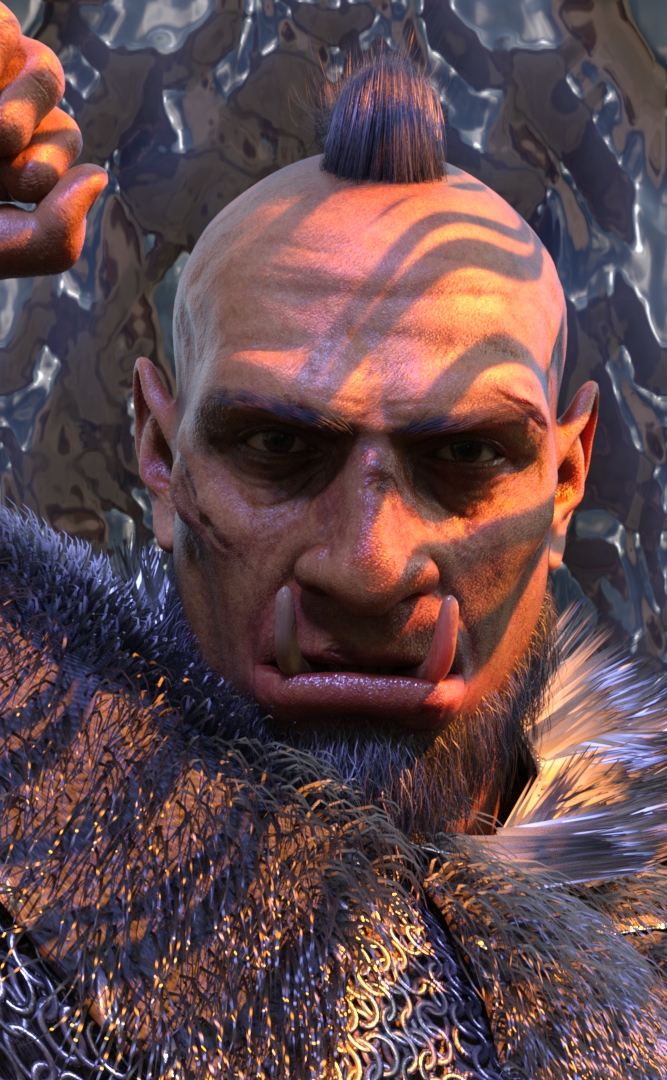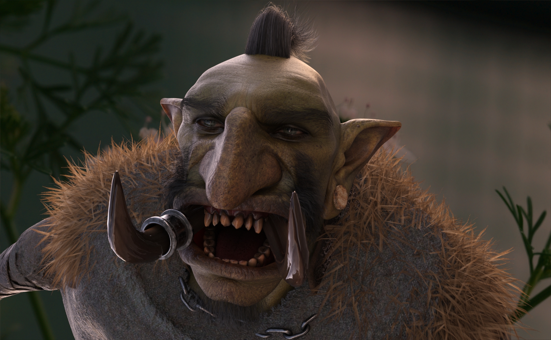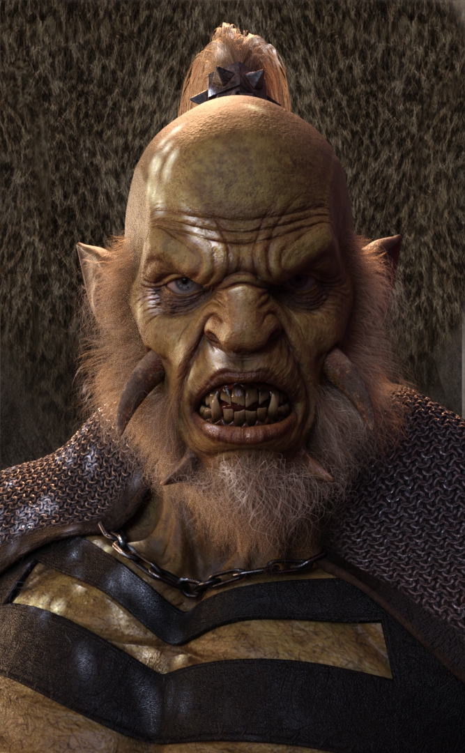 Genesis 9, Alba the Orc Model, Rendered in Daz Studio, Dome lighting, Macro Photo Background, Added Horns