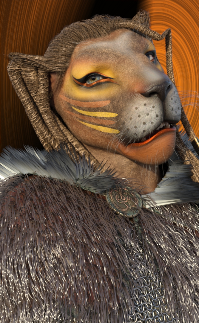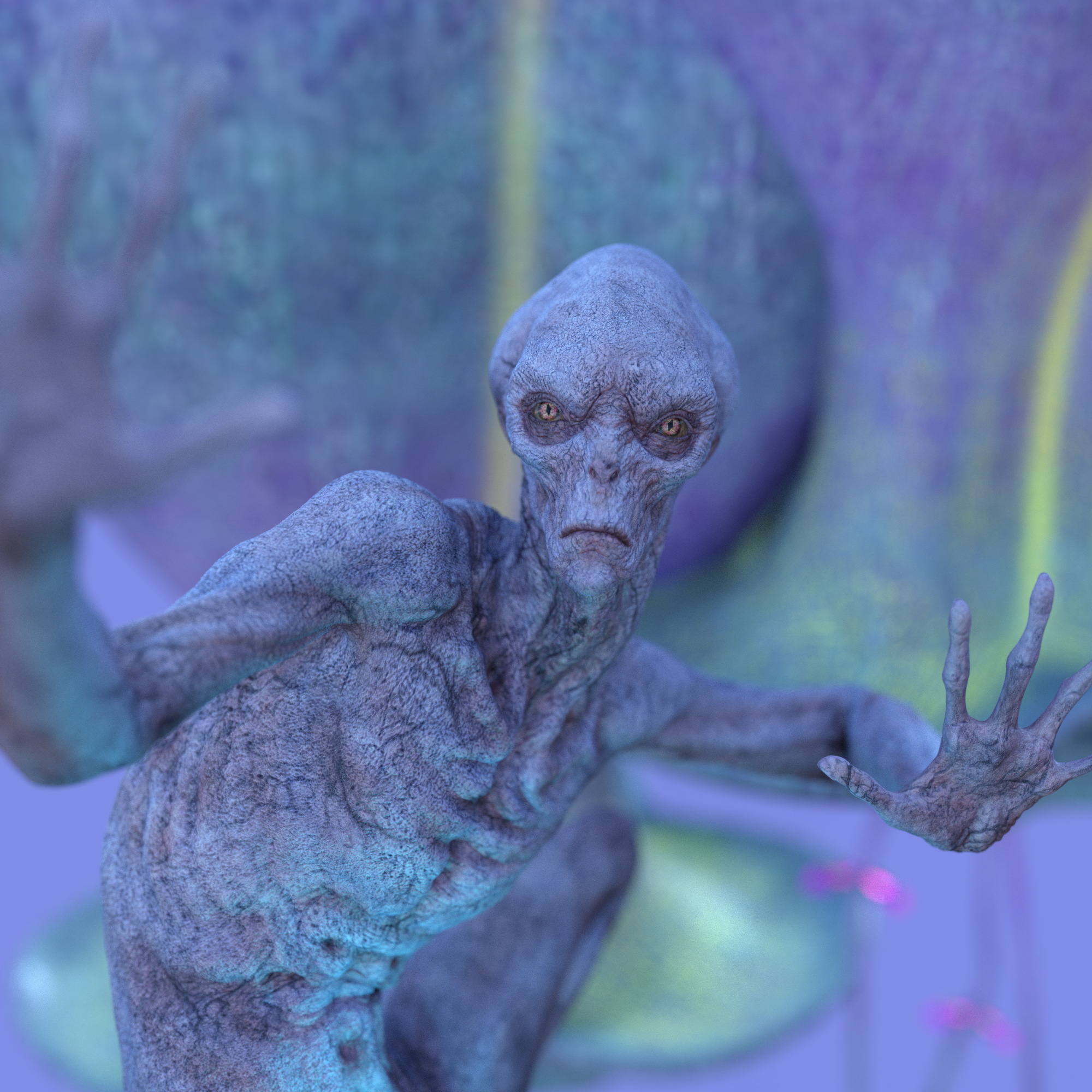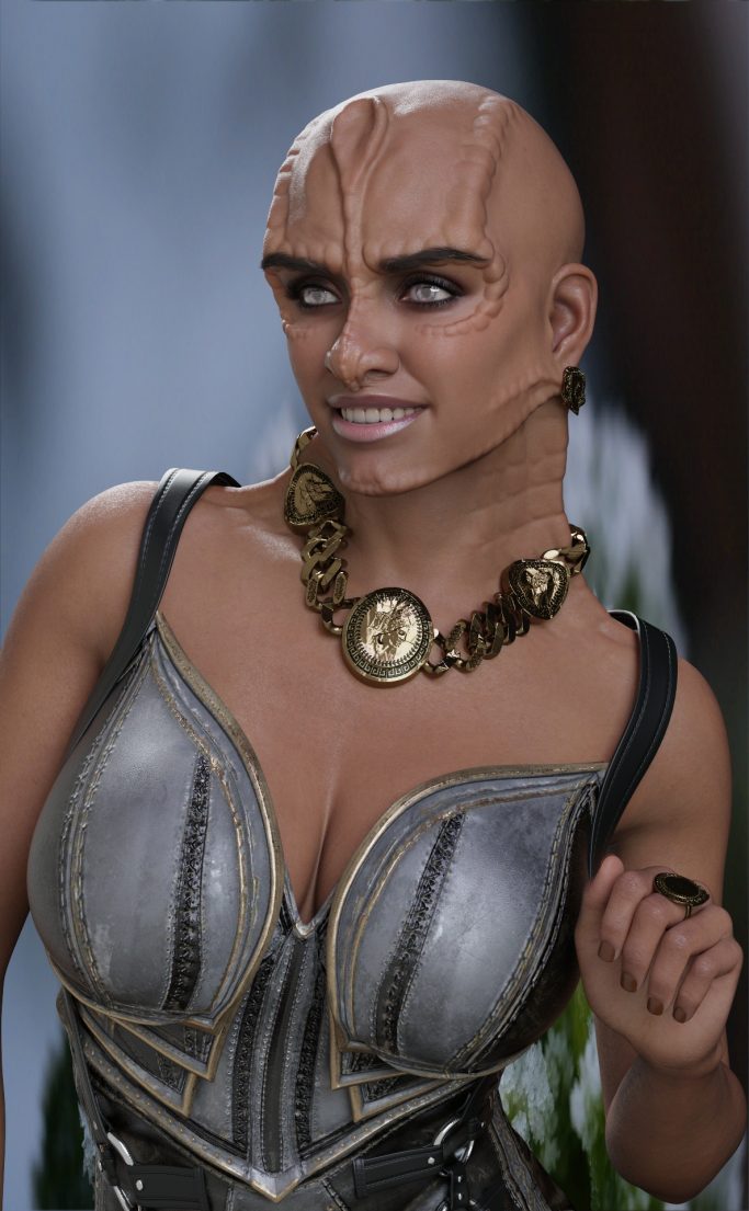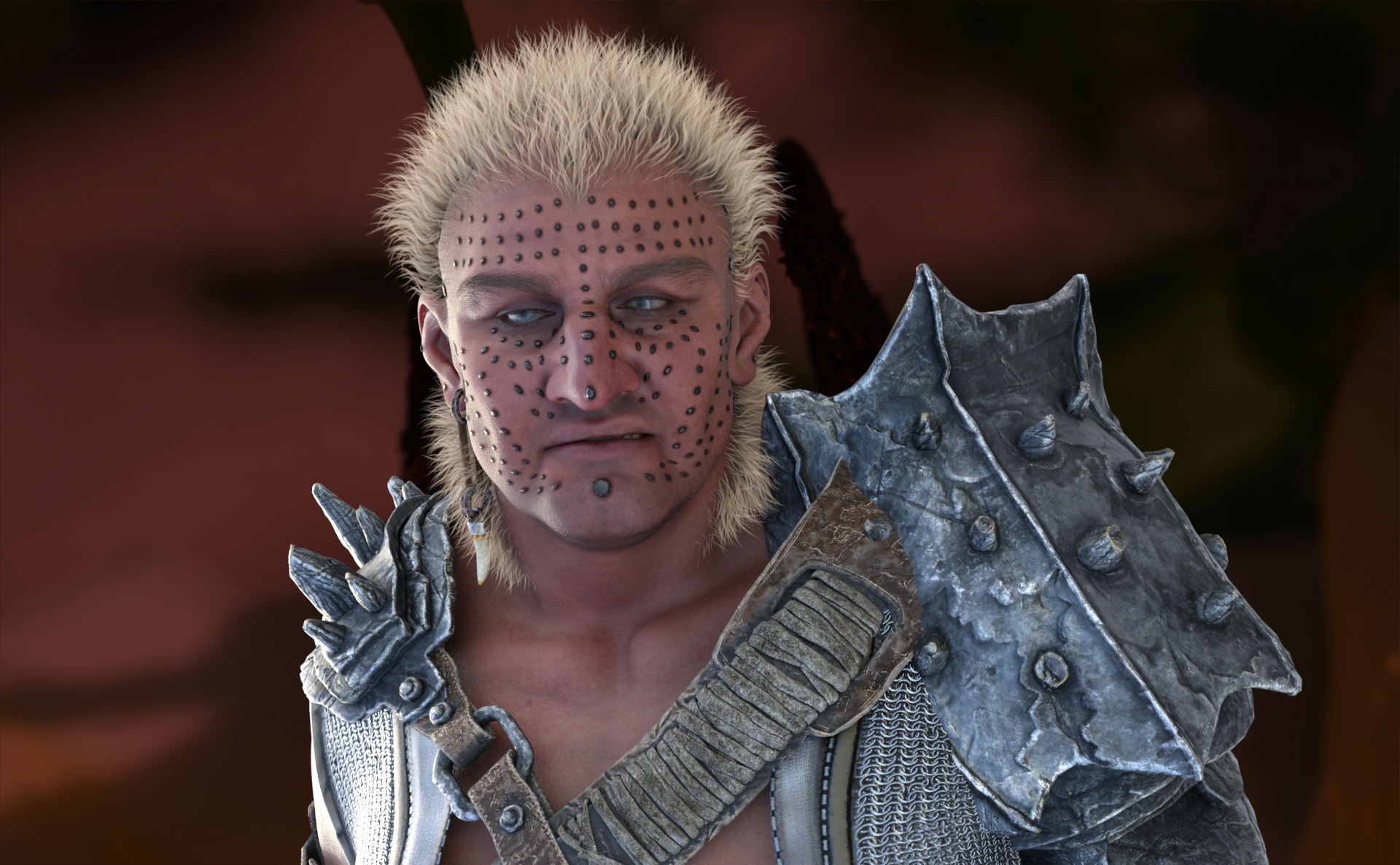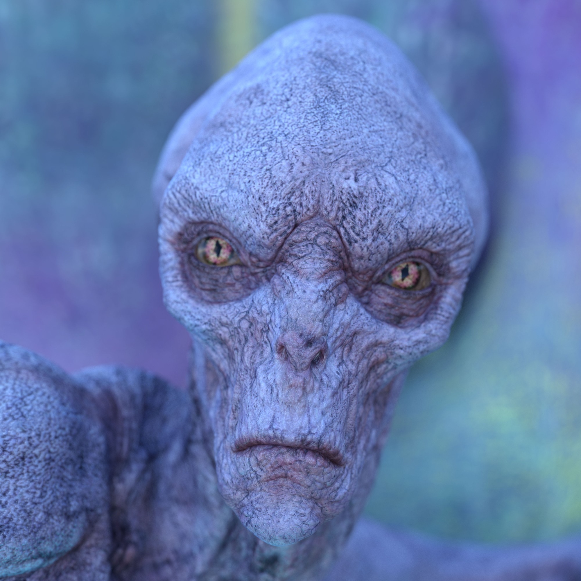 Genesis 9, Alba the Orc Model, Rendered in Daz Studio, Dome lighting, Macro Photo Background, Added Horns