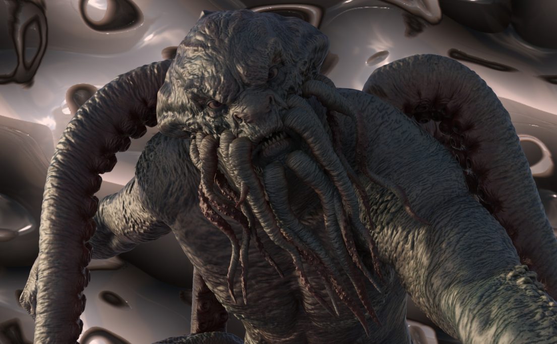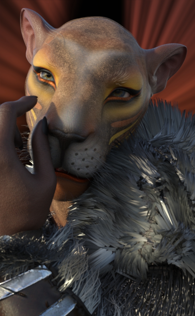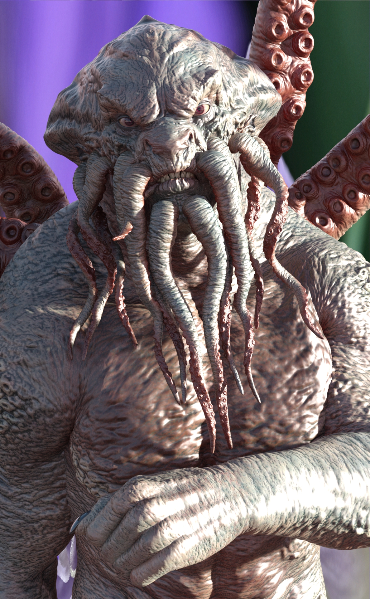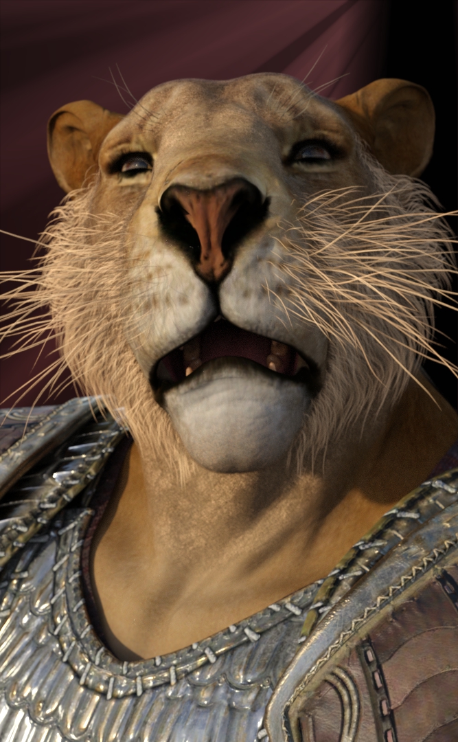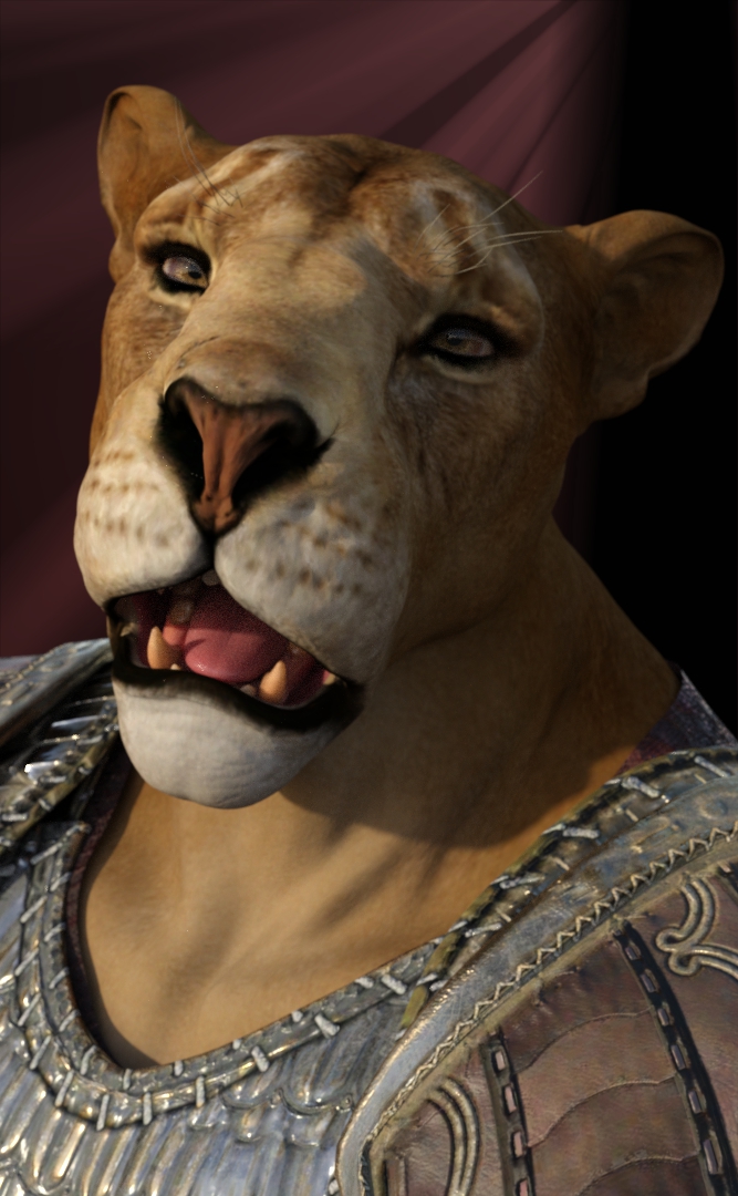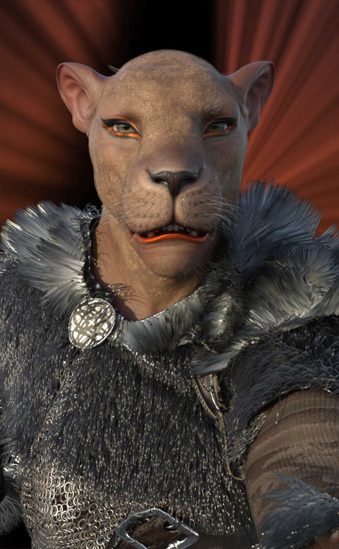 Genesis 9, Alba the Orc Model, Rendered in Daz Studio, Dome lighting, Macro Photo Background, Added Horns