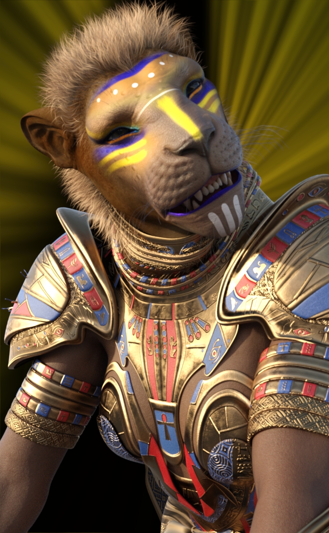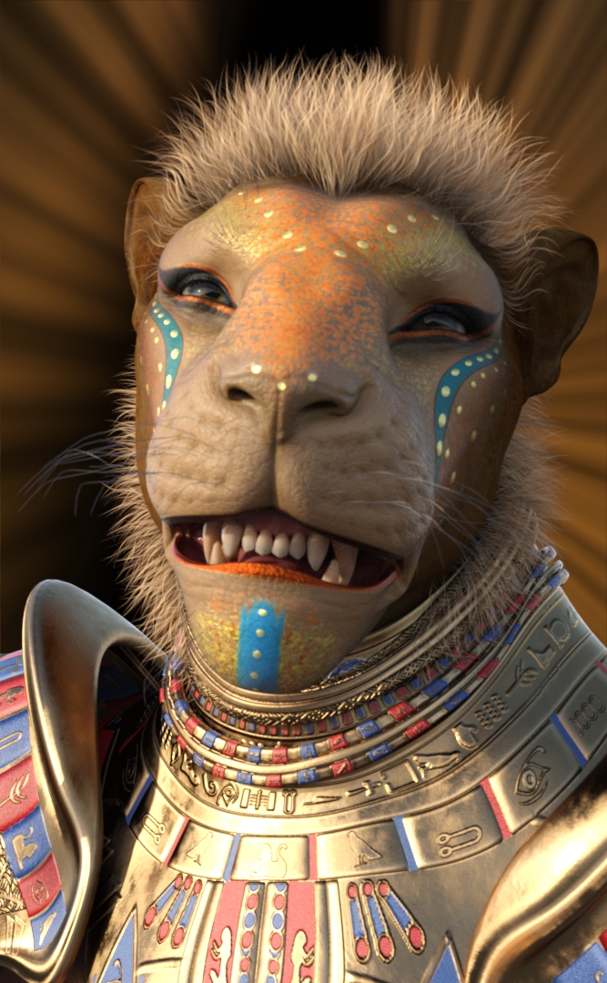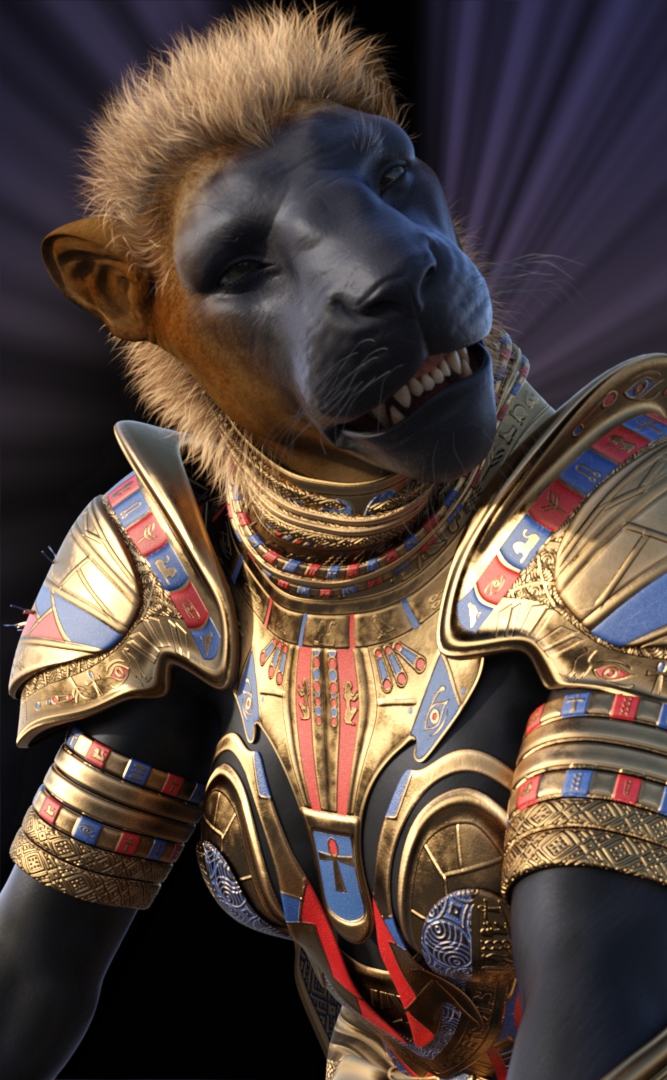 Genesis 9, Alba the Orc Model, Rendered in Daz Studio, Dome lighting, Macro Photo Background, Horns and Textures added