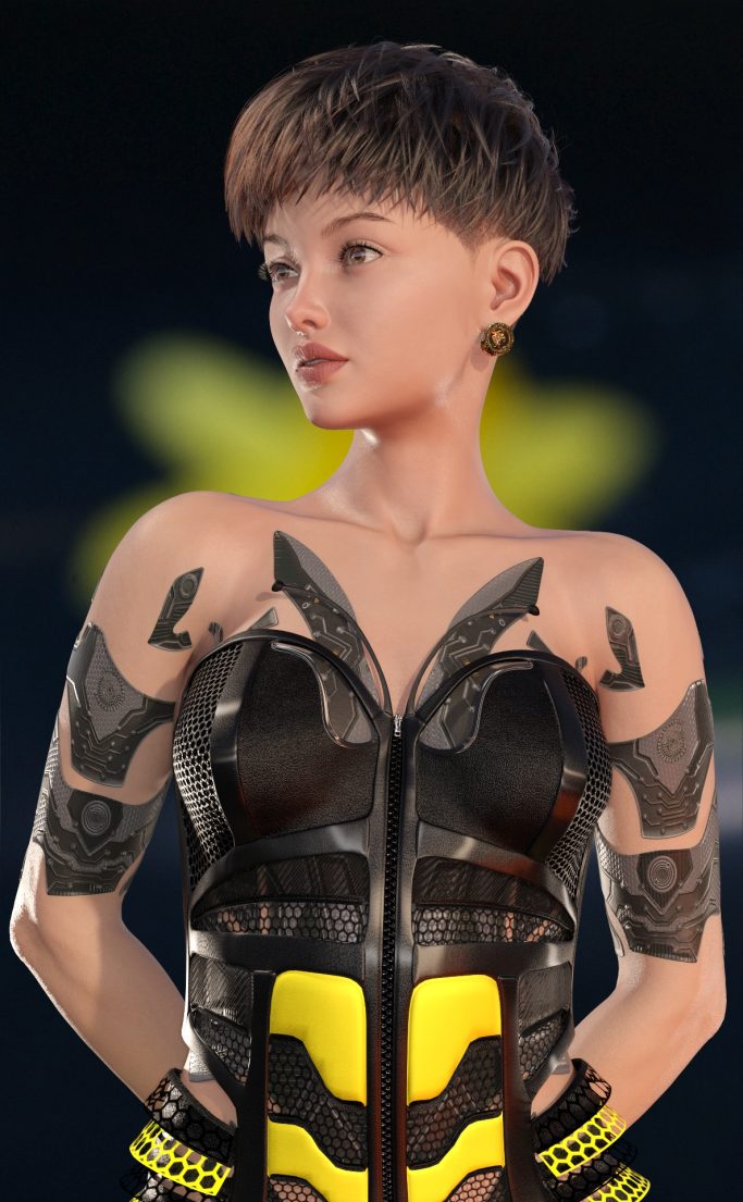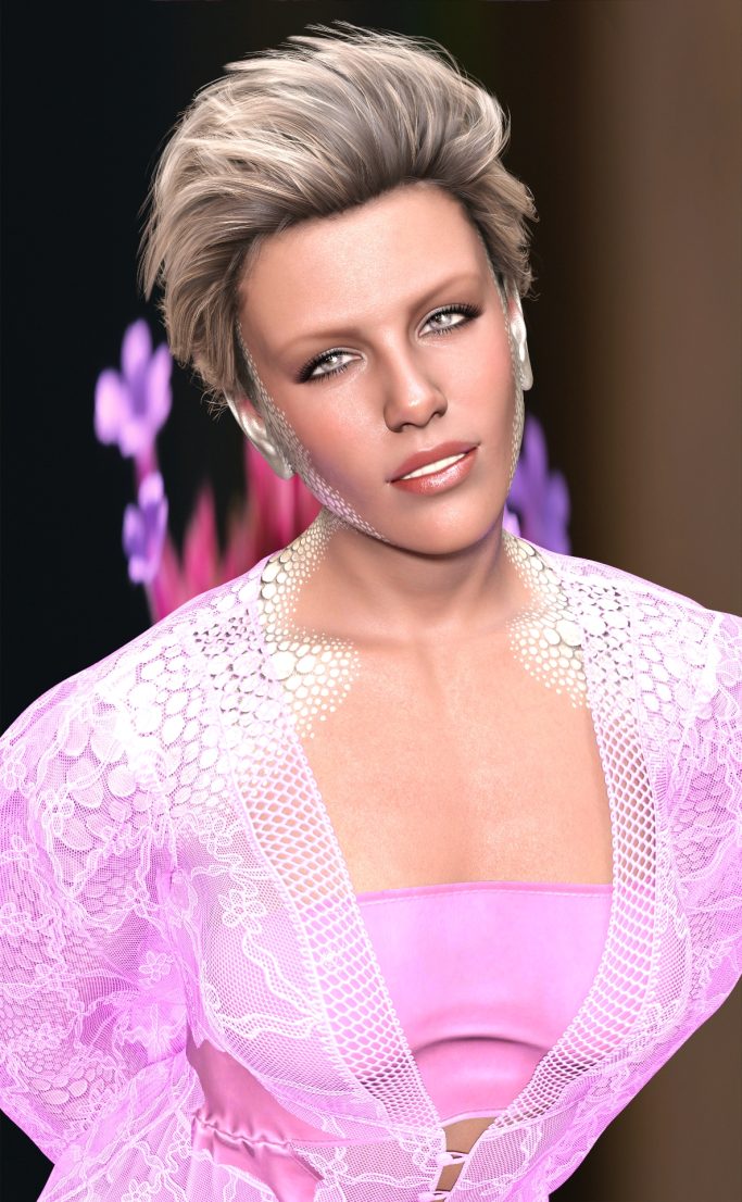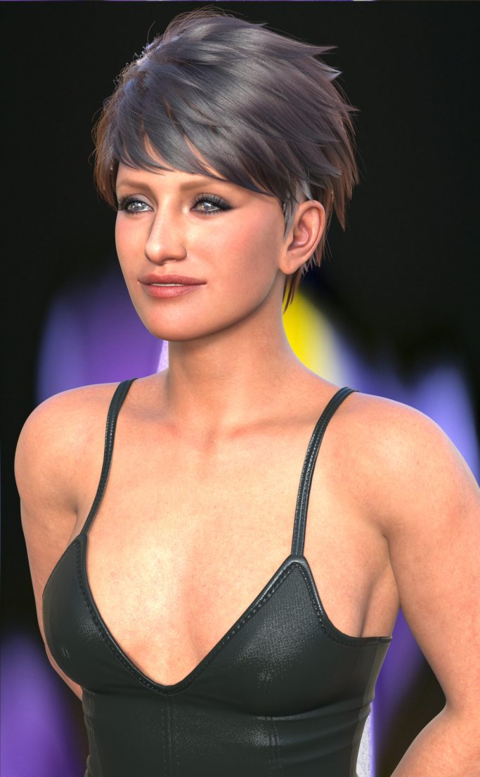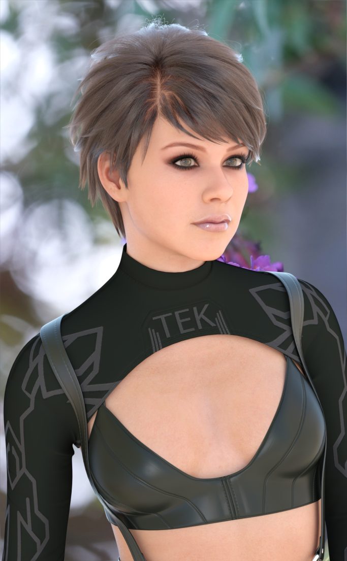 Genesis 9, Model HID Ariel, Hansome Hair XF top, Rendered in Daz Studio, Dome Lighting, Macro Photo Background