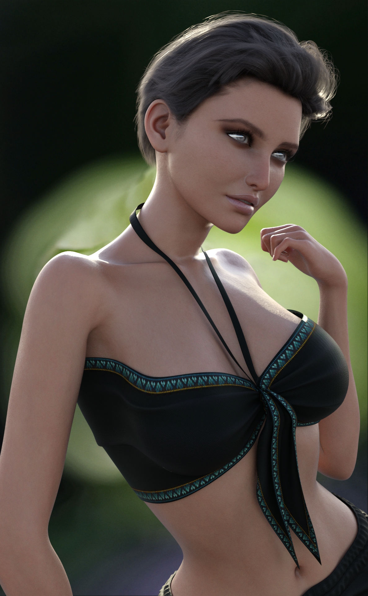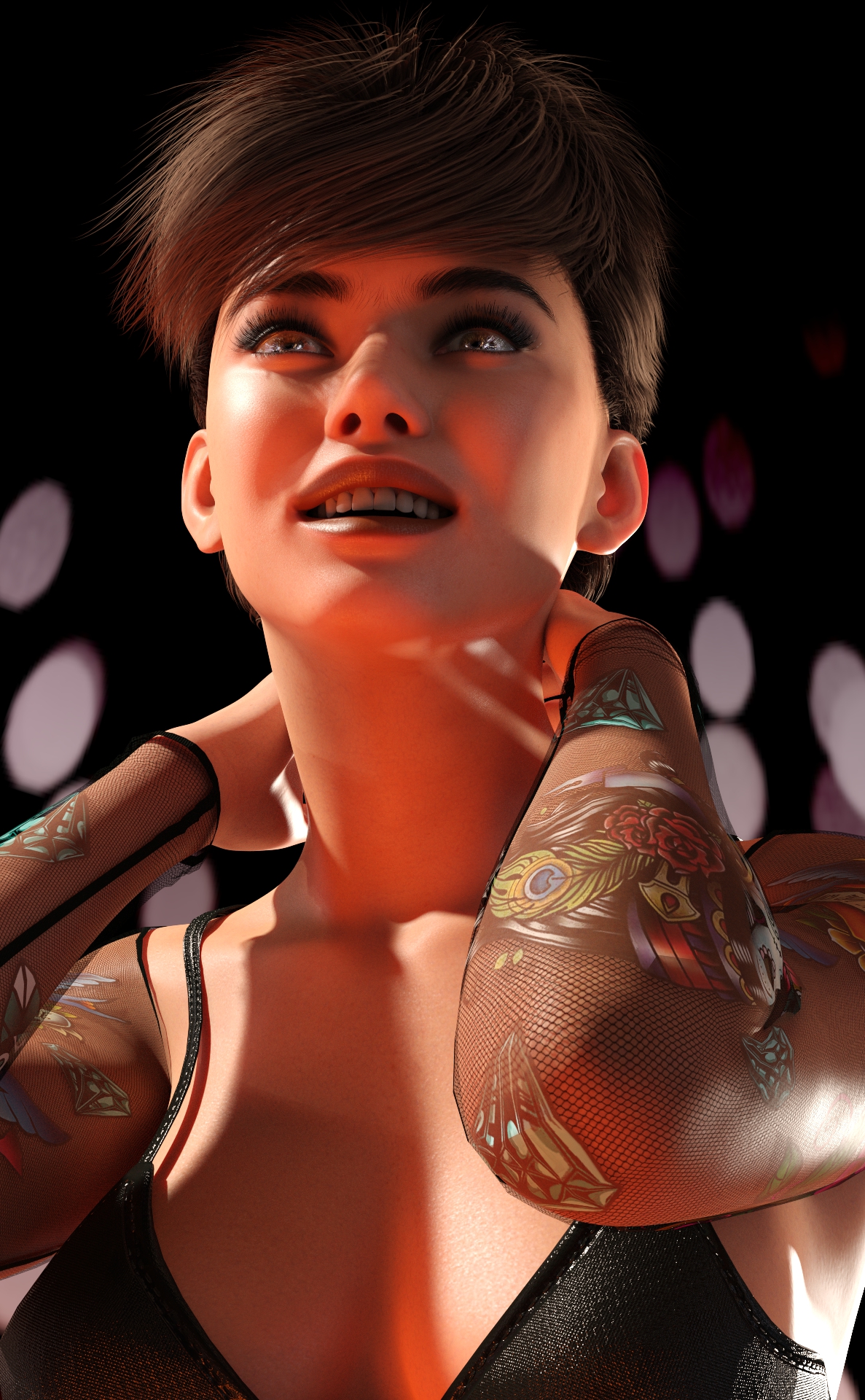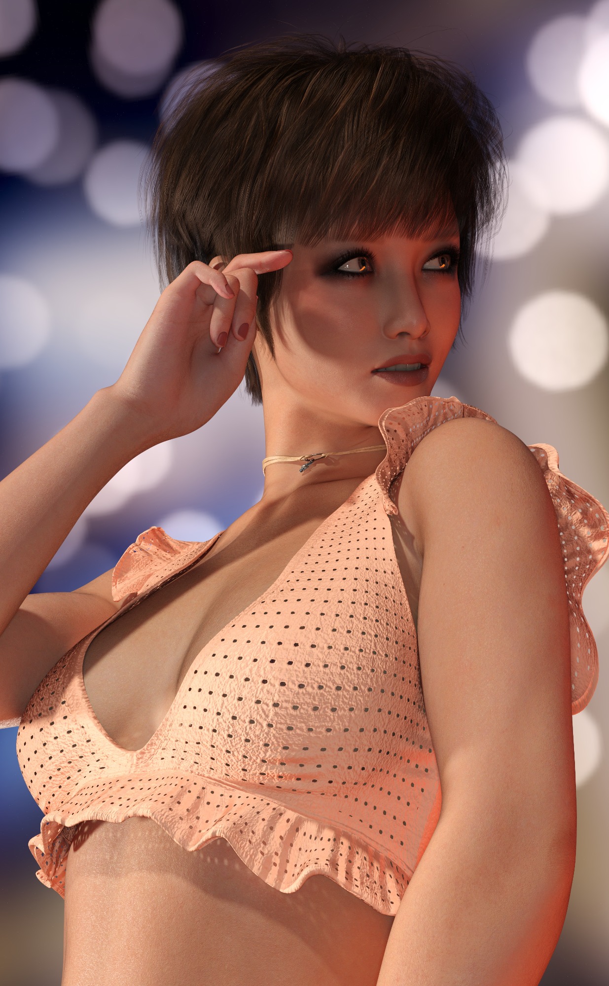 Genesis 9, Model HID Ariel, Hansome Hair XF top, Rendered in Daz Studio, Dome Lighting, Macro Photo Background