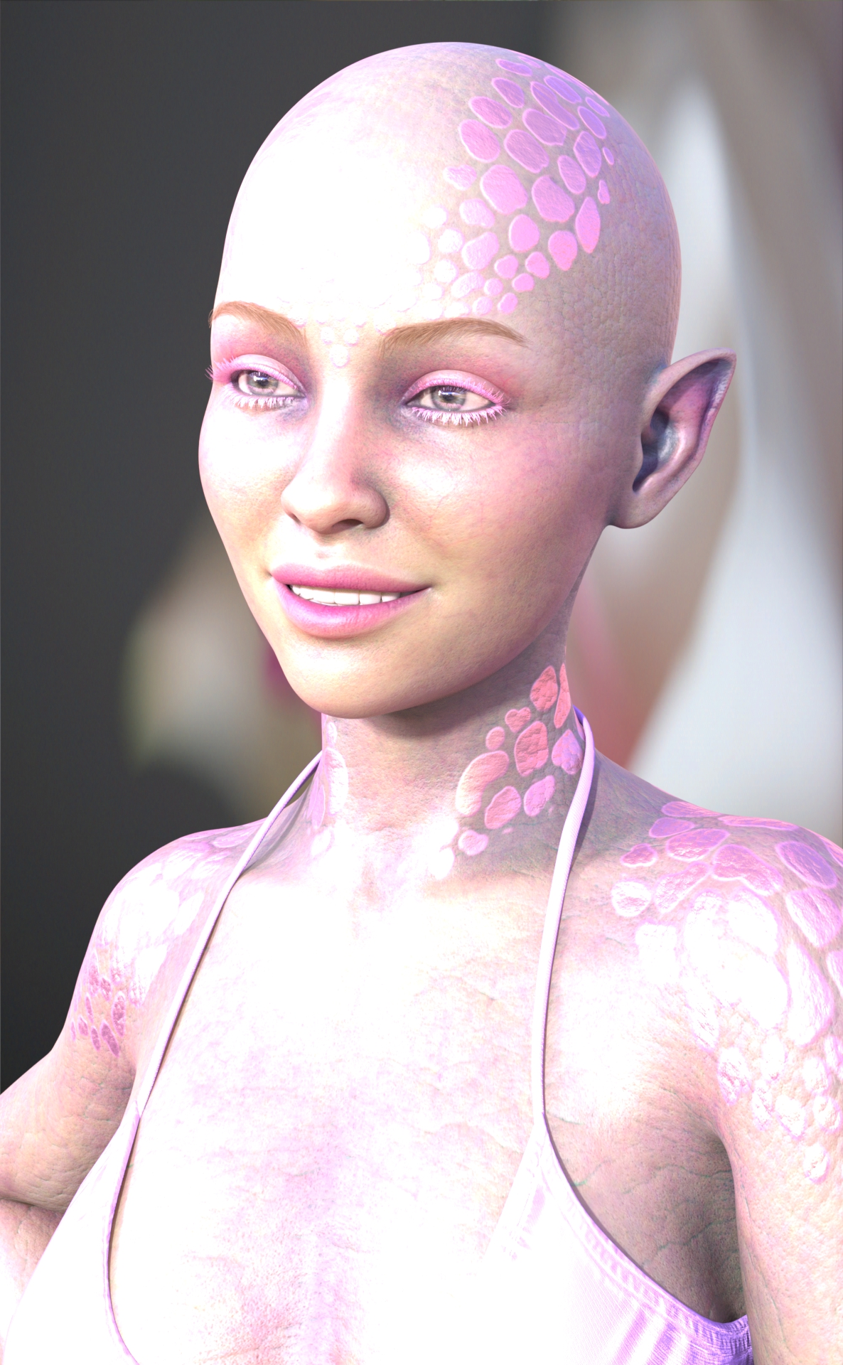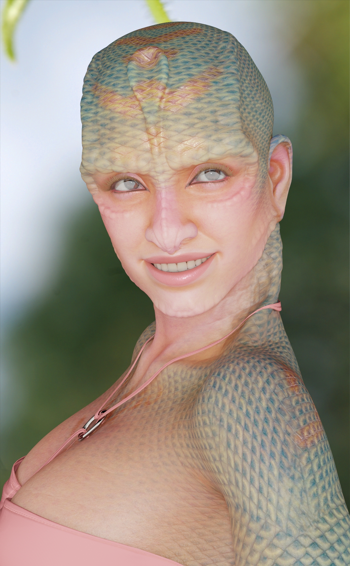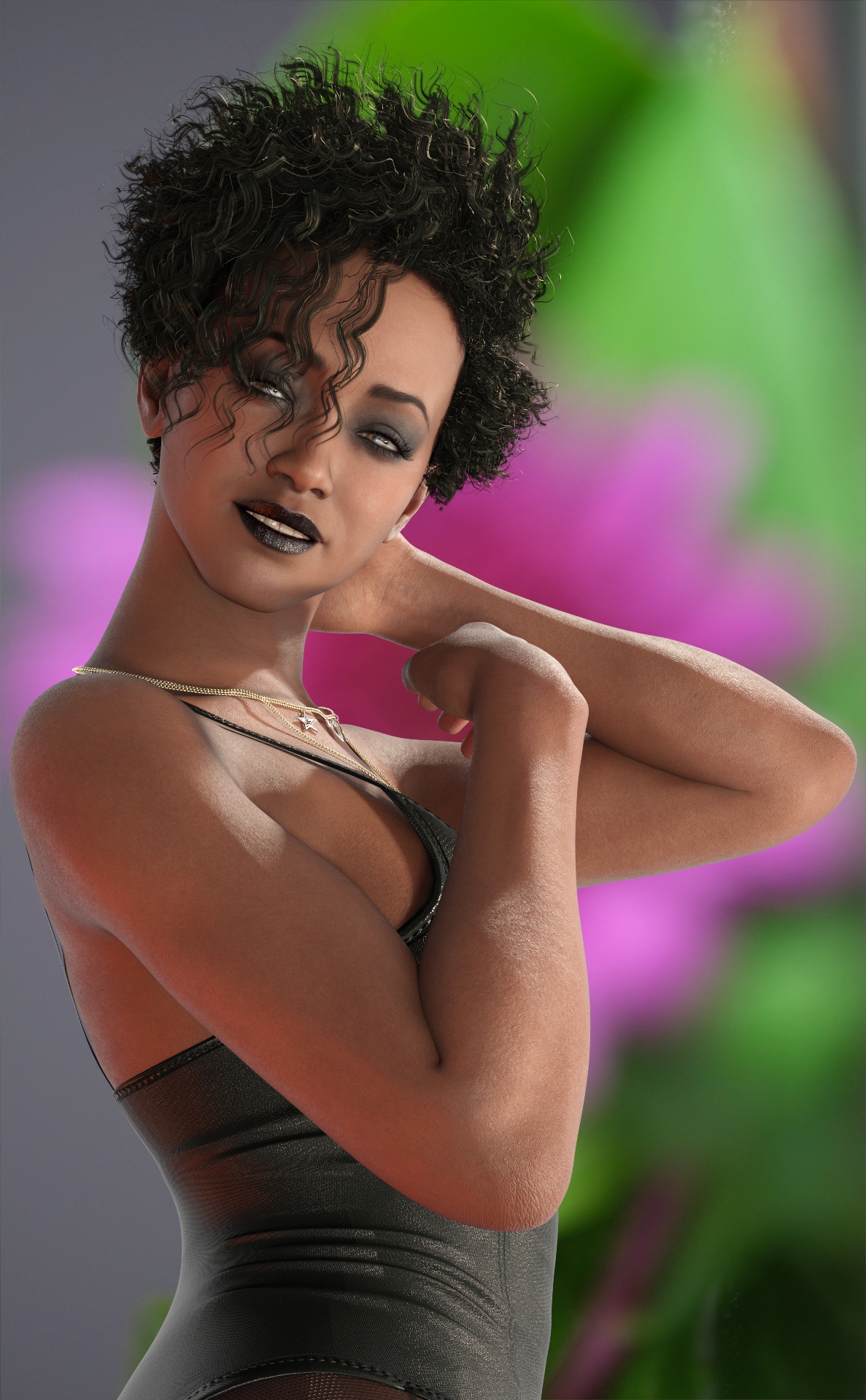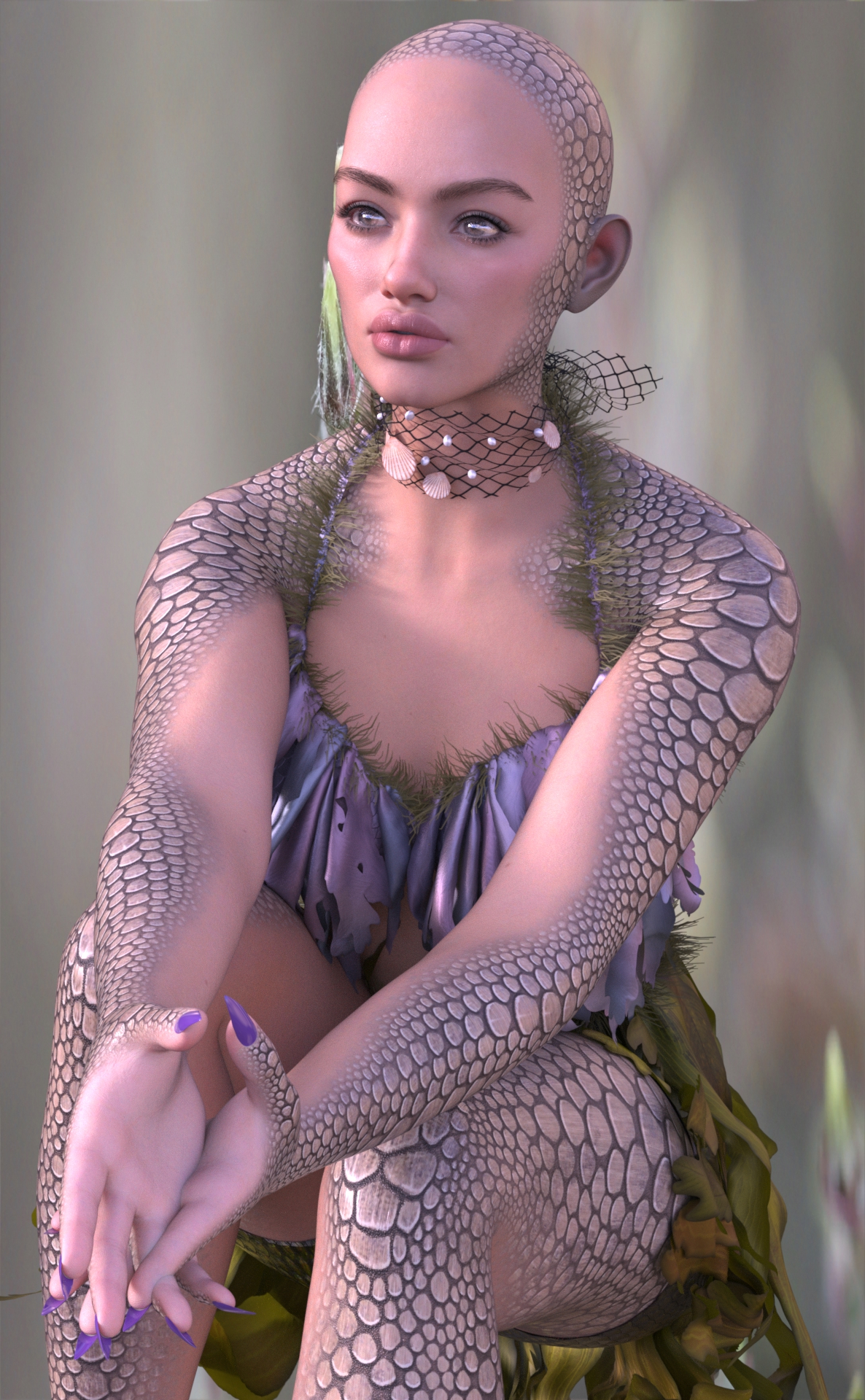 Genesis 9, P3D Model, Rendered in Daz Studio, Dome lighting, Macro Photo Background, with Calipso textures