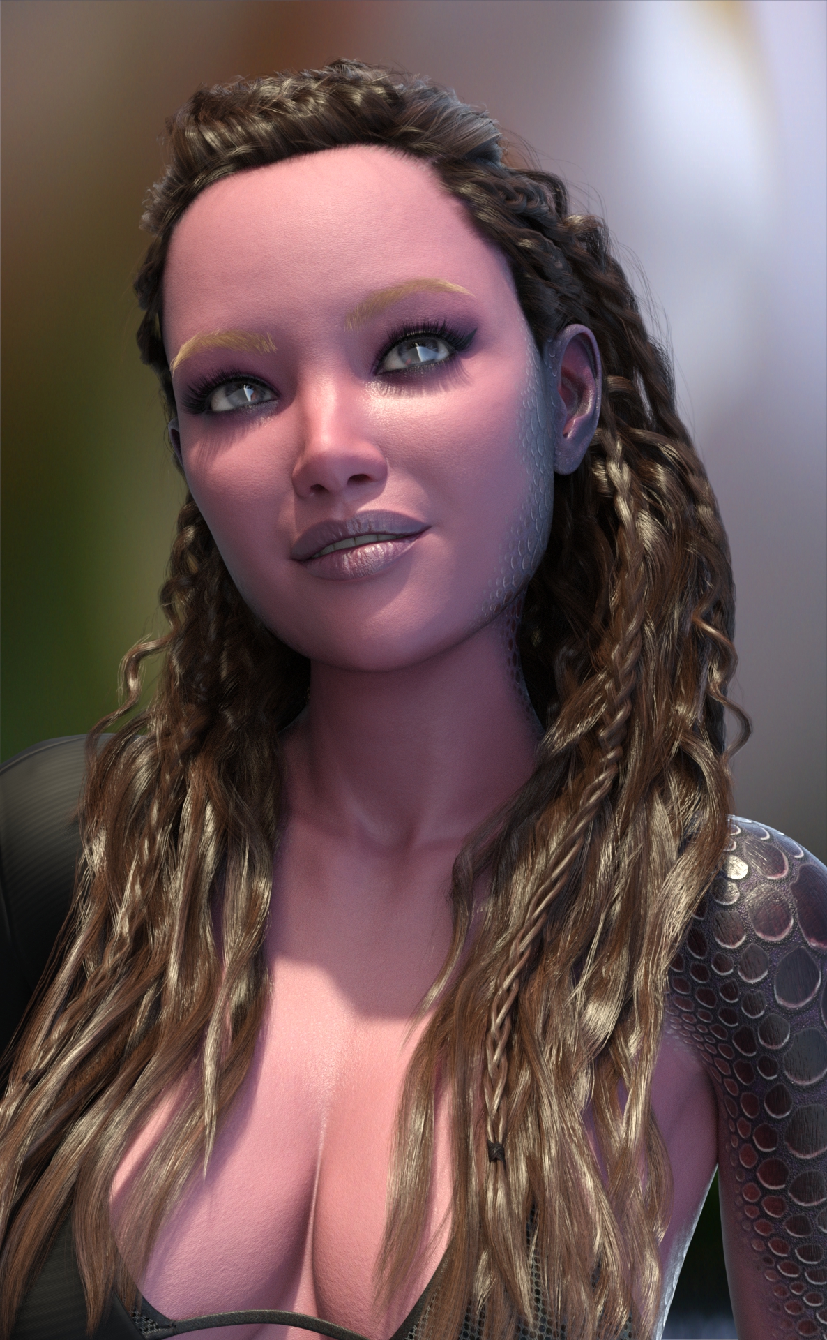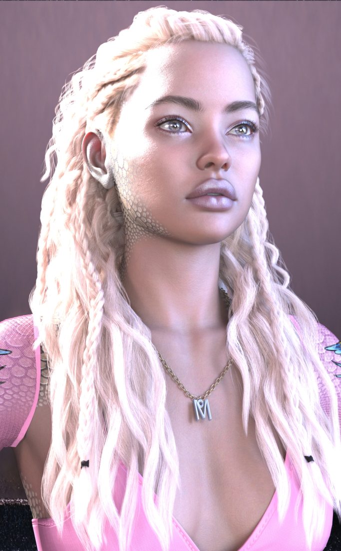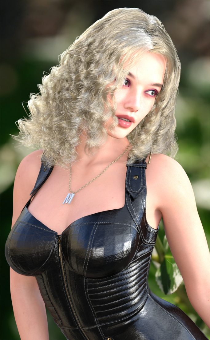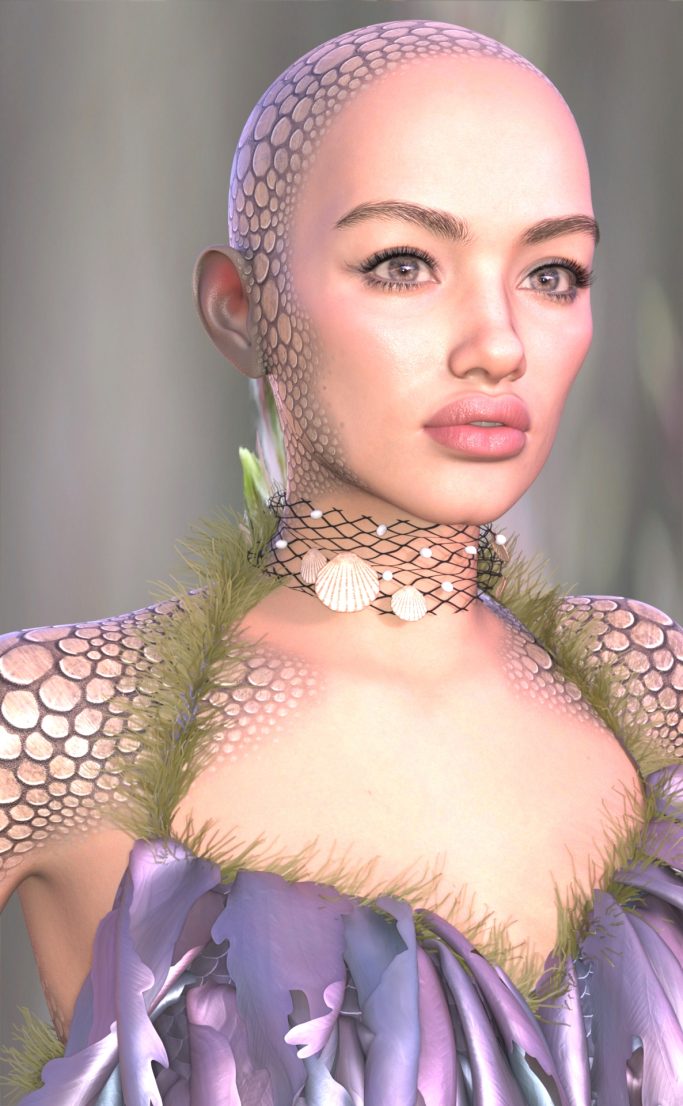 Genesis 9, Model E3D June, Jurie Shimer lips and skin, XF Chrmed Body Suit, Rendered in Daz Studio, Dome lighting, Macro Photo Background