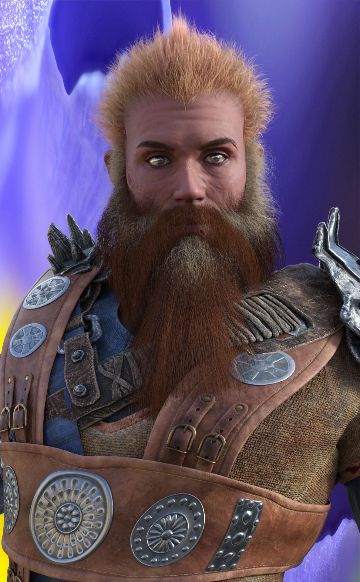 Genesis 9, Scot Model, Rendered in Daz Studio, Dome lighting, Macro Photo Background, BW clothing, FTA Shoulder clothes Kurdan Hair - beard
