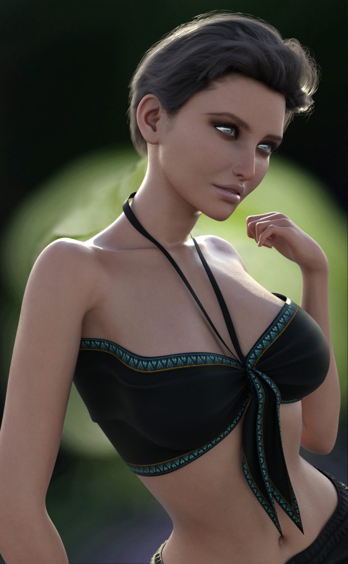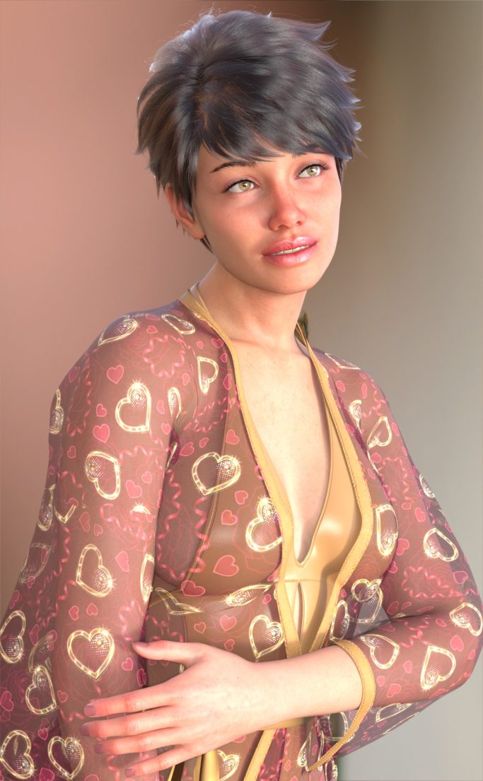 Daz Genesis 9, Model E3D Evalynn, Rendered in Daz Studio with Iray, Macro Background, Dome Lighting, AH Clothing, Hansome Hair